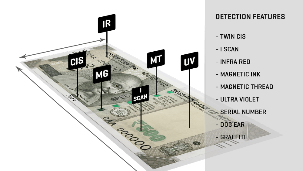 | Detection technology | Twin CIS, UV, MG, MT, IR, 2D & 3D |